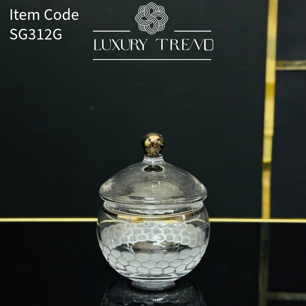 عبوة زجاجية لحفظ السكر محفورة يدويا